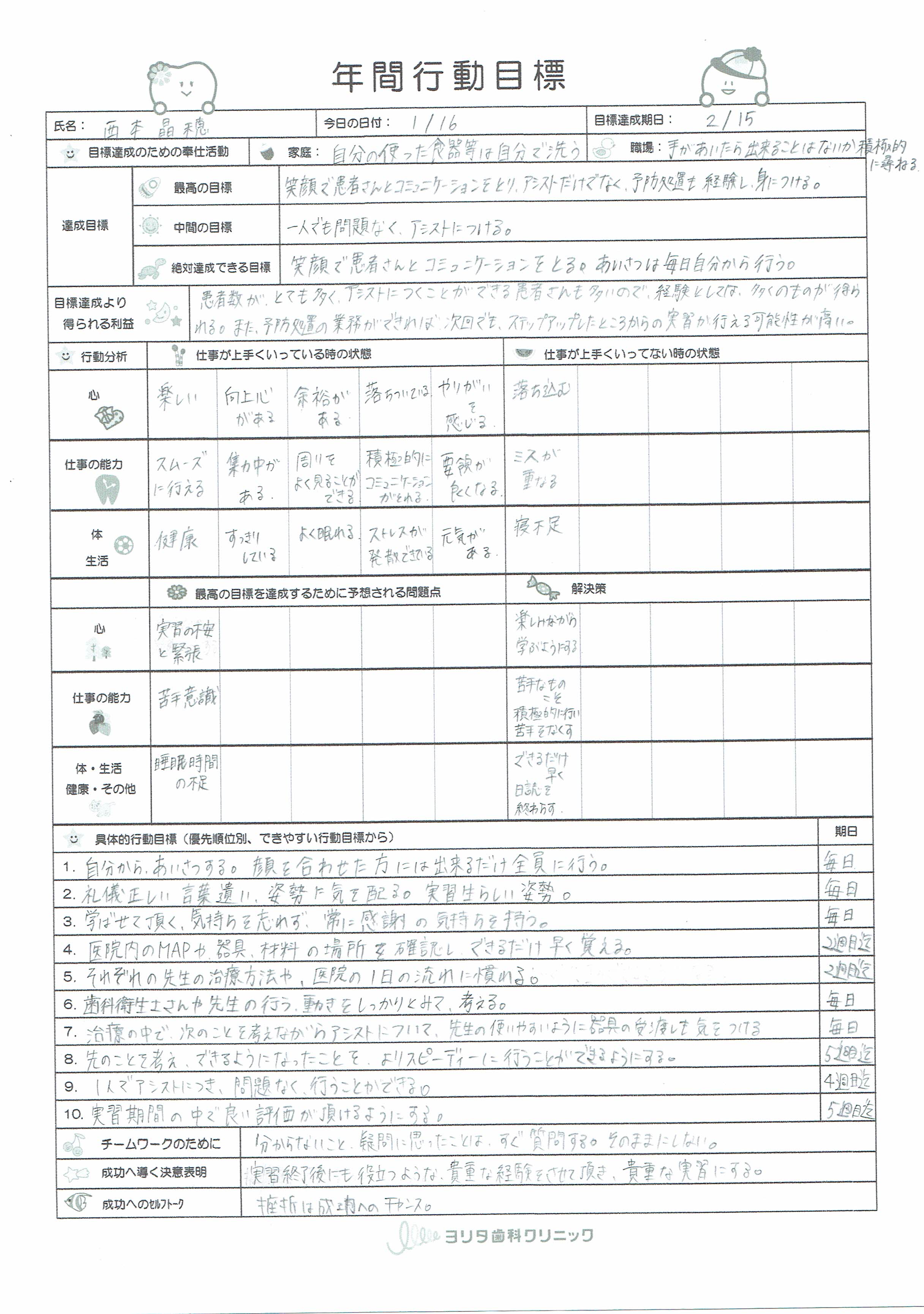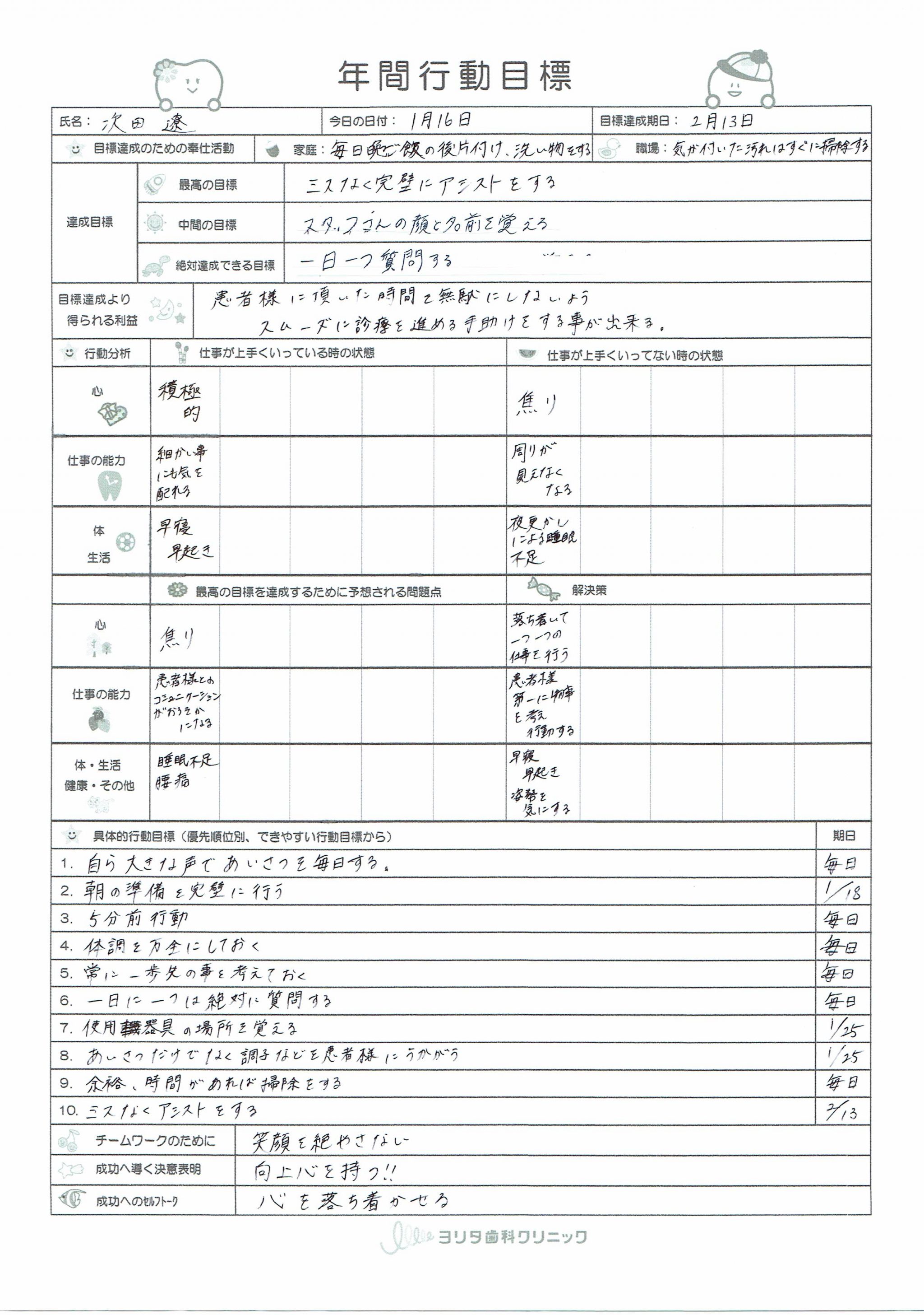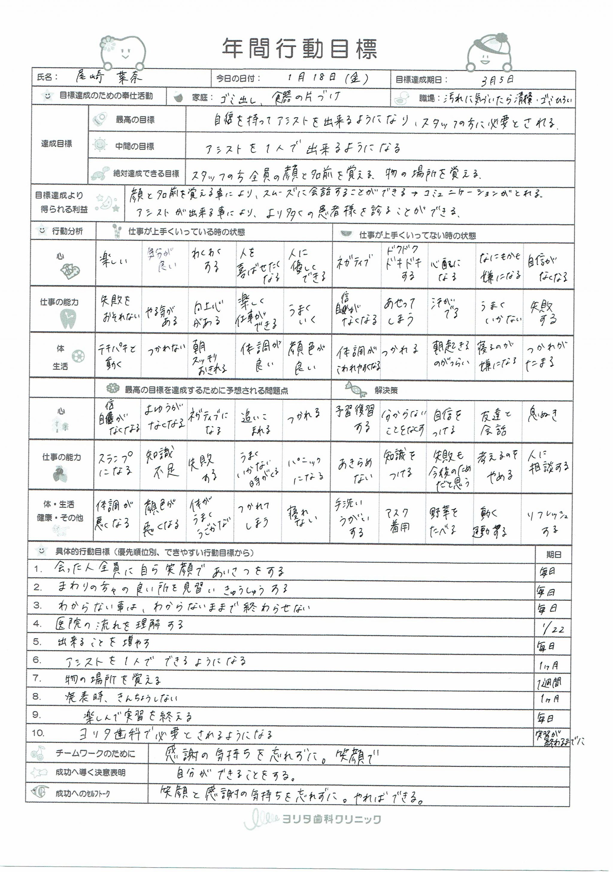 ・毎朝すれ違う全員の方に、笑顔とハキハキした声で、挨拶をする。 |