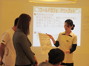 話し合い、テーブル毎に発表しました。自分のテーブルだけでもかなりの数の意見が出たのですが、
