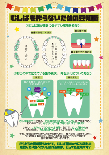 《むしばを作らないための豆知識》①むしば菌が住みつきやすい場所を知ろう! ②お口の中で起きている歯の脱灰、再石灰化について知ろう!