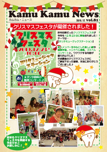 昨年好評だったクリスマスフェスタが テーマは… 『ヨリタミュージックステーション』 新人メンバーを中心とした楽しい劇や健康学習、ハンドベル演奏、 クリスマスフェスタにご参加下さった皆様、
