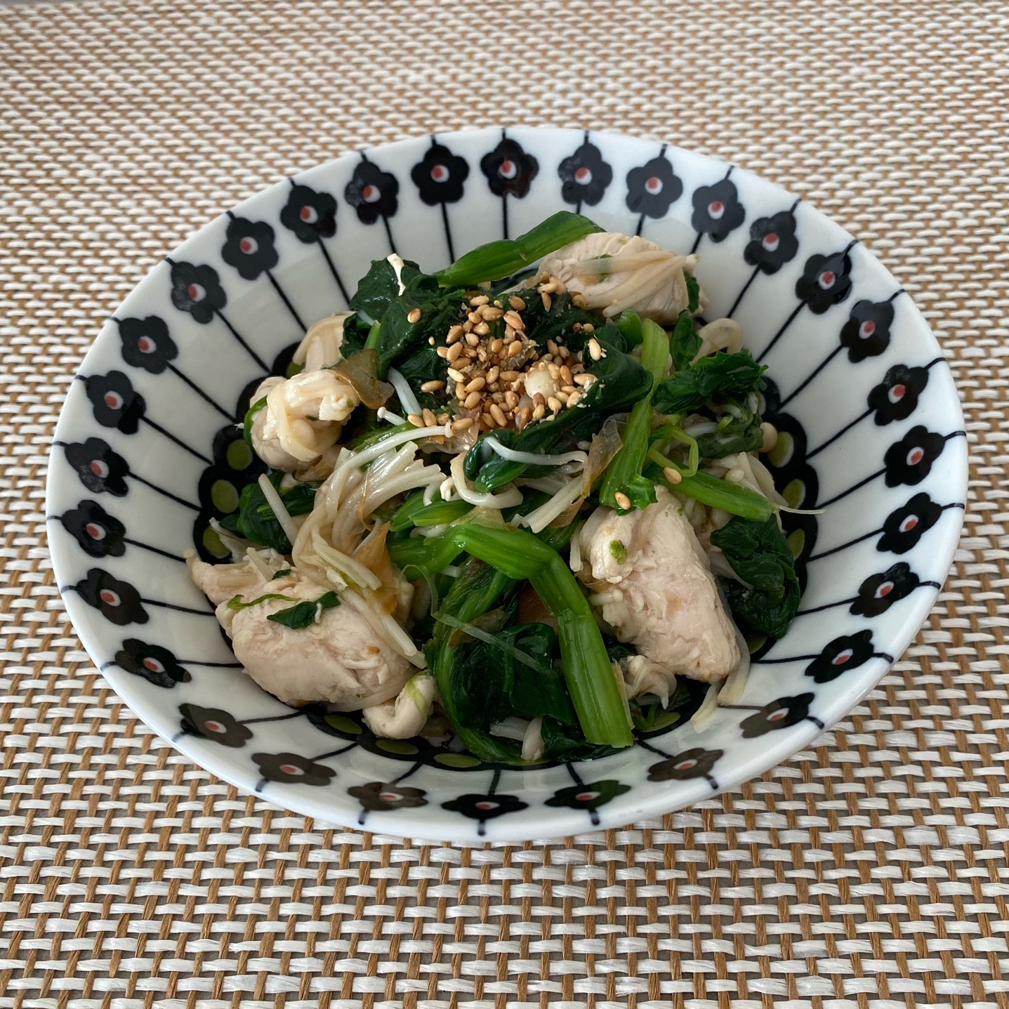 レシピ:①ほうれん草、鶏ささみ、えのきのナムル風