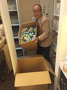 中には、予約がないにも関わらず、ビニール袋に多量のエコキャップを