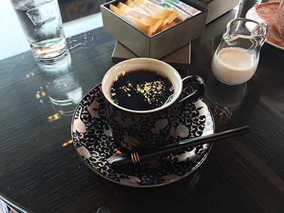 (ウェルカムドリンクのコーヒーや、なんと金粉(食用)などもサービスで付いてきました!)