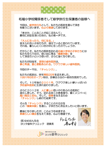 当日行ったイベントや、ヨリタ歯科クリニックの紹介資料も、同封しました。