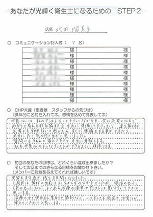 私の前回の目標は、「患者さんと笑顔で接する」ことを目標にしました。
