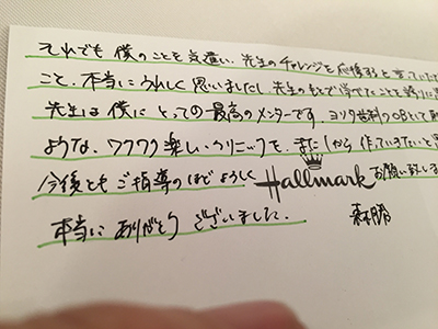 プレゼントをお渡ししたり、逆にお手紙も頂きました。
