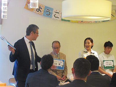 9:15 朝礼見学(研修ルームで模擬朝礼) 9:30 院長との対話セッション 11:00 休憩