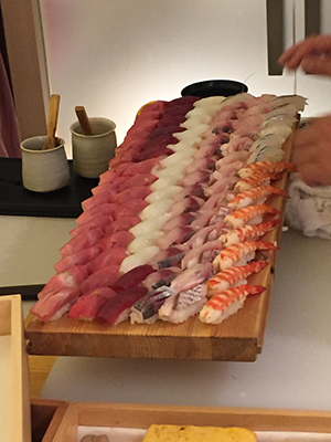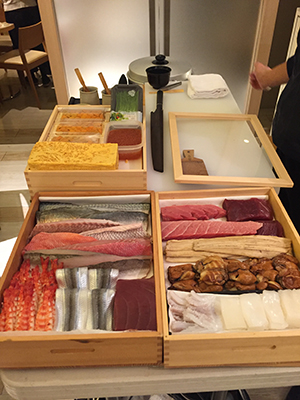 ◆1回で十二種類以上握りますが、残ったネタは全て食べ放題となっております。