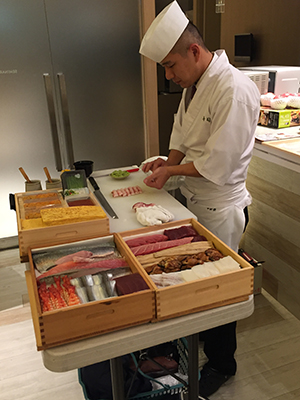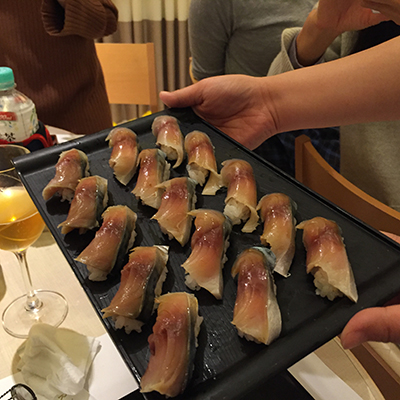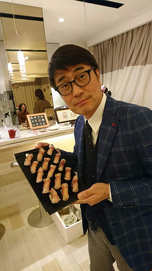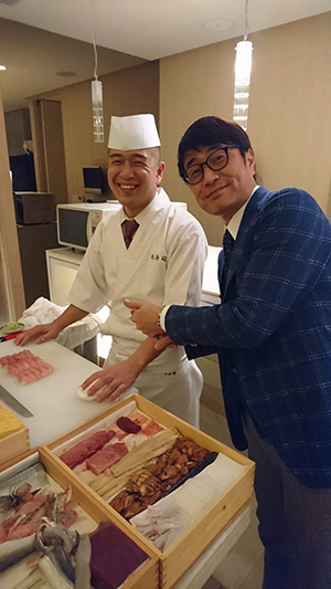 忘年会の始まる約2時間前に、出前寿司の創(はじめ)さんの中村 創さんが医院に到着。