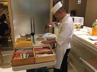 ◆目の前で魚の皮をひき、ネタにしてから握ります。