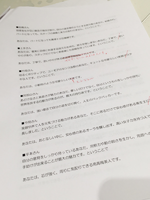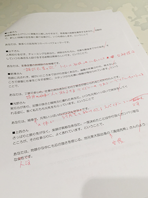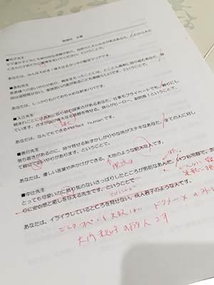 実行委員のメンバーの元原稿に目を通し、よりその人に合った内容にするため