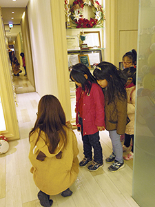 まずは、エレベーターホール前で、子供たちをお迎え、記念撮影。