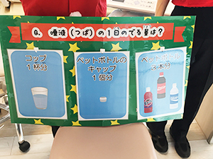 唾液に関する知識を、クイズ形式で学習するブースです。