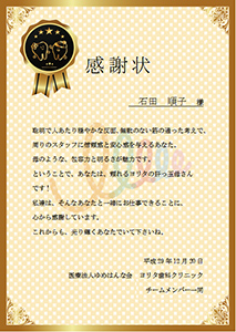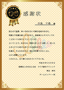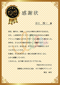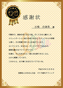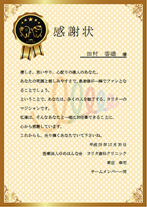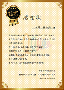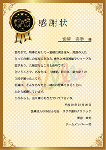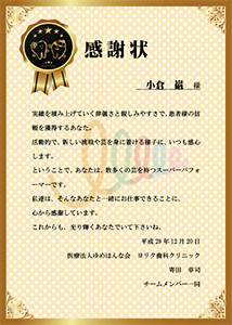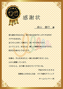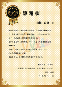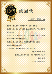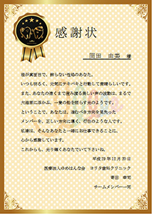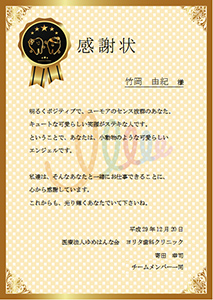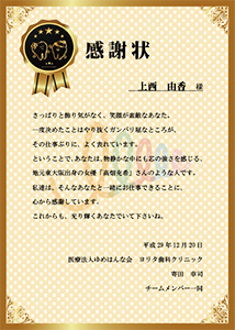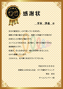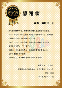 その感謝の気持ちを表すため、一人一人に「感謝状」をお渡ししました。