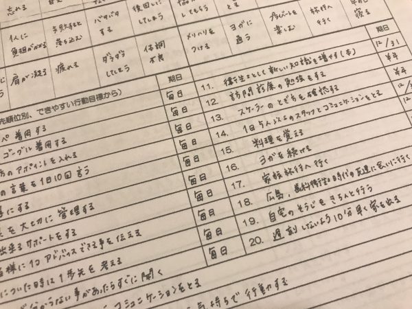 2018年 年間行動目標が、私の元に届きました。