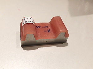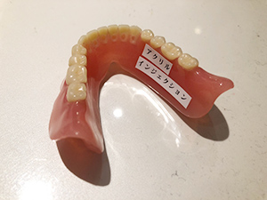 まずは、心地良いフィット感と高強度を実現した、アクリルインジェクション義歯の説明。