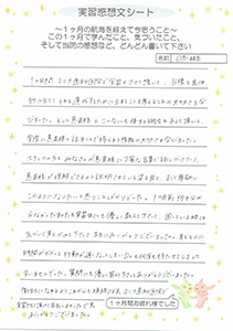 ・約1ヶ月の実習も終わりに近付き、今寂しい気持ちやもっと学ばせて頂きたい