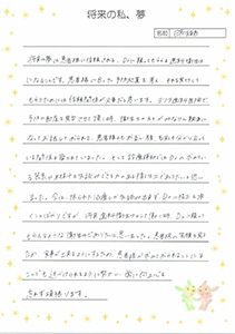 ということで、実習感想文と『将来の私・夢』を朝礼で、メンバー全員の前で