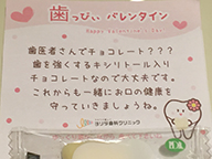 ムシ歯にならないホワイトチョコを、来院者の皆様にプレゼント。