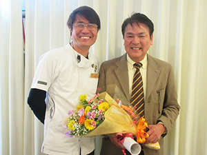 8年間の感謝の気持ちを込めて、花束とメンバーからの寄せ書きを、お渡ししました。