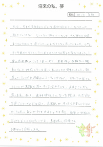 ここでの実習で学んだ事を、最大限に生かし、良い歯科衛生士だと
