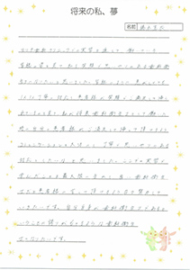 ということで、実習感想文と『将来の私・夢』を朝礼で、メンバー全員の前で
