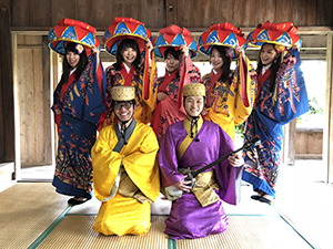 私たちのチームは、全員で琉球衣装を着て、写真を撮りました。