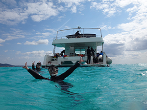中にはホテルを離れ、ダイビングや、シュノーケリング、水中ボードや市内観光などを