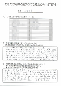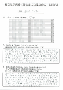 ものだと、思います。ですので、次の目標として、患者様と仲良くなり、自分の名前を