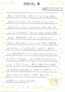 さらに、衛生士 西村さん、青木さんより実習感想文と、『将来の私・夢』も