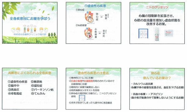 ・今回の勉強会では、高の原さんから全身疾患別のお薬について、そして歯科治療時の