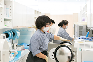 | 滅菌の基本作業をしっかりとマスターしていただき、最近では周りのスタッフと 連携をとりながら、器具の特殊な洗浄、紛失防止管理に務めてもらっています。 素晴しいスマイルサポーターになっていただいたと、谷口は思います。 |