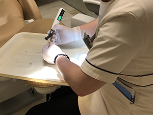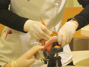 同じ午前中には、研修ルームにて新人衛生士のトレーニングも行われて