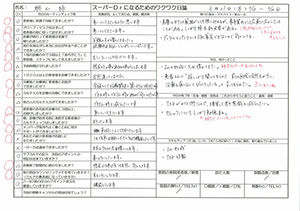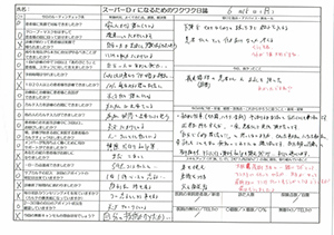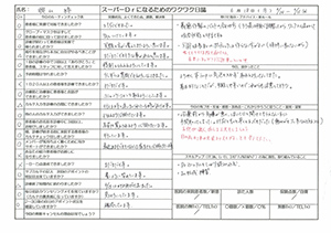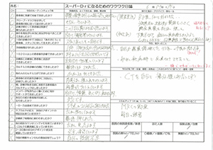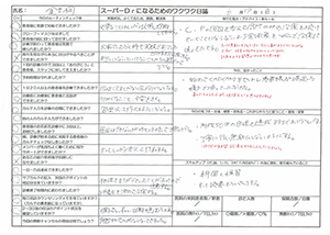 | ・患者様に、笑顔で対応できましたか? ・グローブ・マスクをはずして、患者様の前に回って話せましたか? ・診療が終わって患者様は笑顔で、帰られましたか? ・周りを見ながら本当に自分がやるべきことが、できましたか? ・1回の診療の中で3回以上「ありがとう」と、患者様、スタッフに対して言えましたか? ・予約時間は、守れましたか? ・治療前と治療後に患者様と会話が、できましたか? ・カルテ入力を、診療の合間にできましたか? ・患者様のお名前を診療中に3回以上、お呼びしましたか? ・朝、診療が始まる前に来院する患者様の、カルテチェックはしましたか? ・メンバーが気持ちよく働くために、何かサポートができましたか? ・あなたの紹介患者様が、お越しになりましたか? ・診療終了時間内に、終わりましたか? ・毎日初診カウンセリングメモを、見ていますか?(カルテの裏表紙になっていますか) |