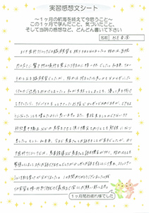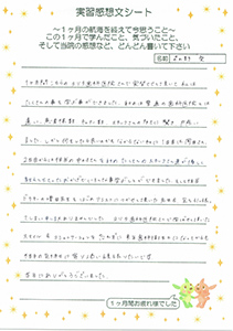 ■実習感想文シート ・ヨリタ歯科クリニックでの臨床実習も残り、数日となりました。 また、普段見ることのできない外科処置や矯正などの見学をさせて頂く機会も そして、私自身、今まで患者さんとお話することが苦手でしたが、ヨリタ歯科 1ヶ月間、ありがとうございました。