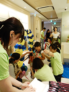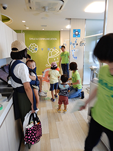 まずは、エレベーターホール前で、子供たちをお迎え、記念撮影。