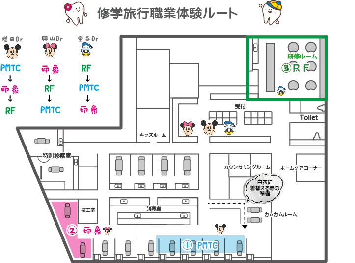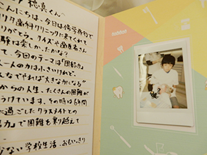 今回は、歯科医院体験セットと、修学旅行イベント実行委員会のメンバーが