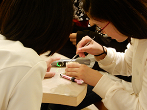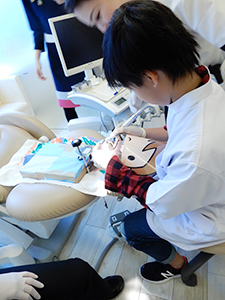 模型の歯を使い、ムシ歯をつめる体験もして頂きました。