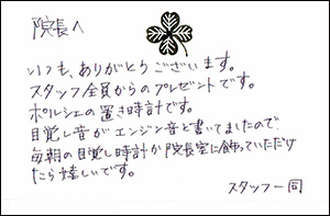 今年勤務して頂いたメンバーには、私たちの医院を選んで頂いたことに感謝です。