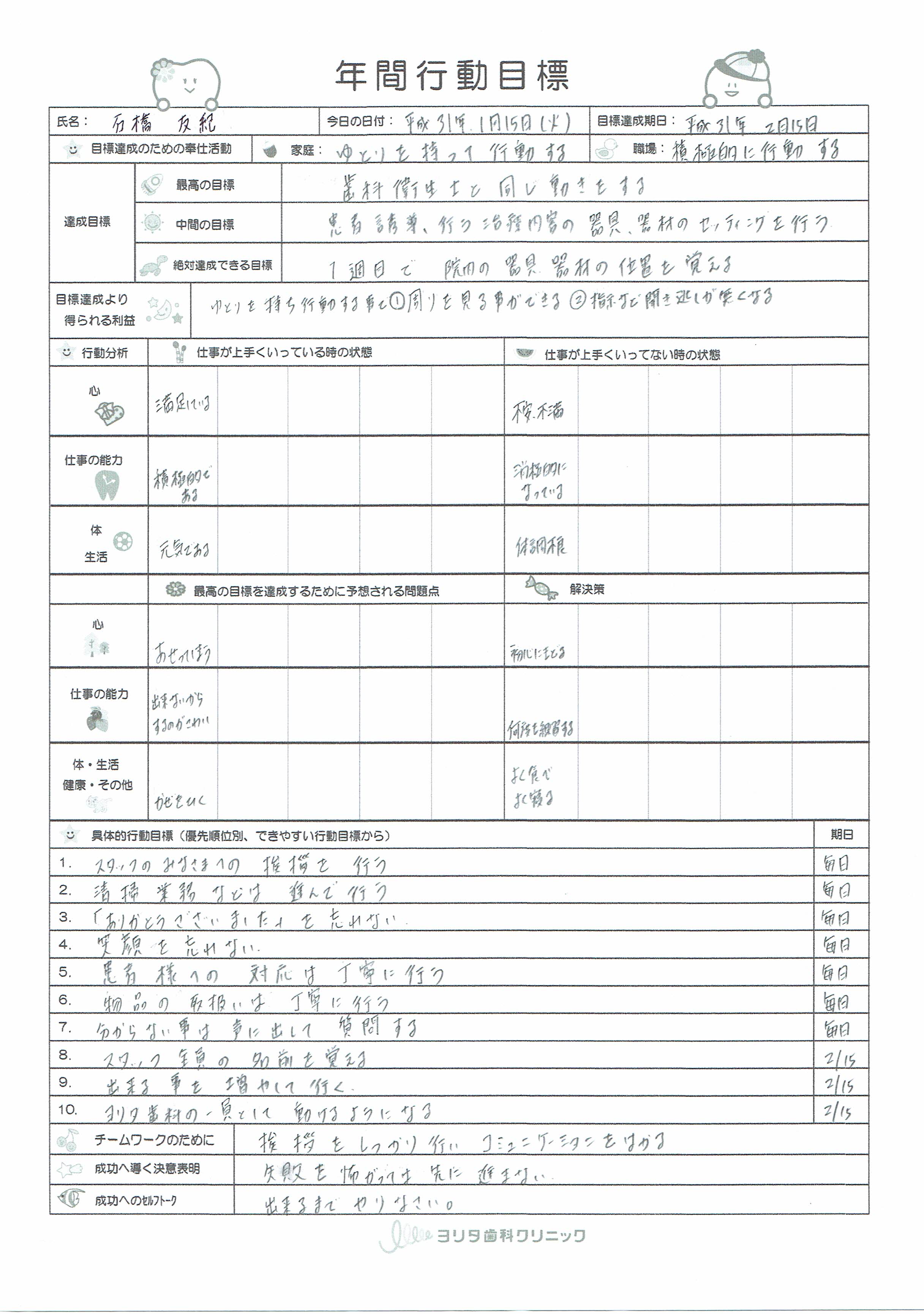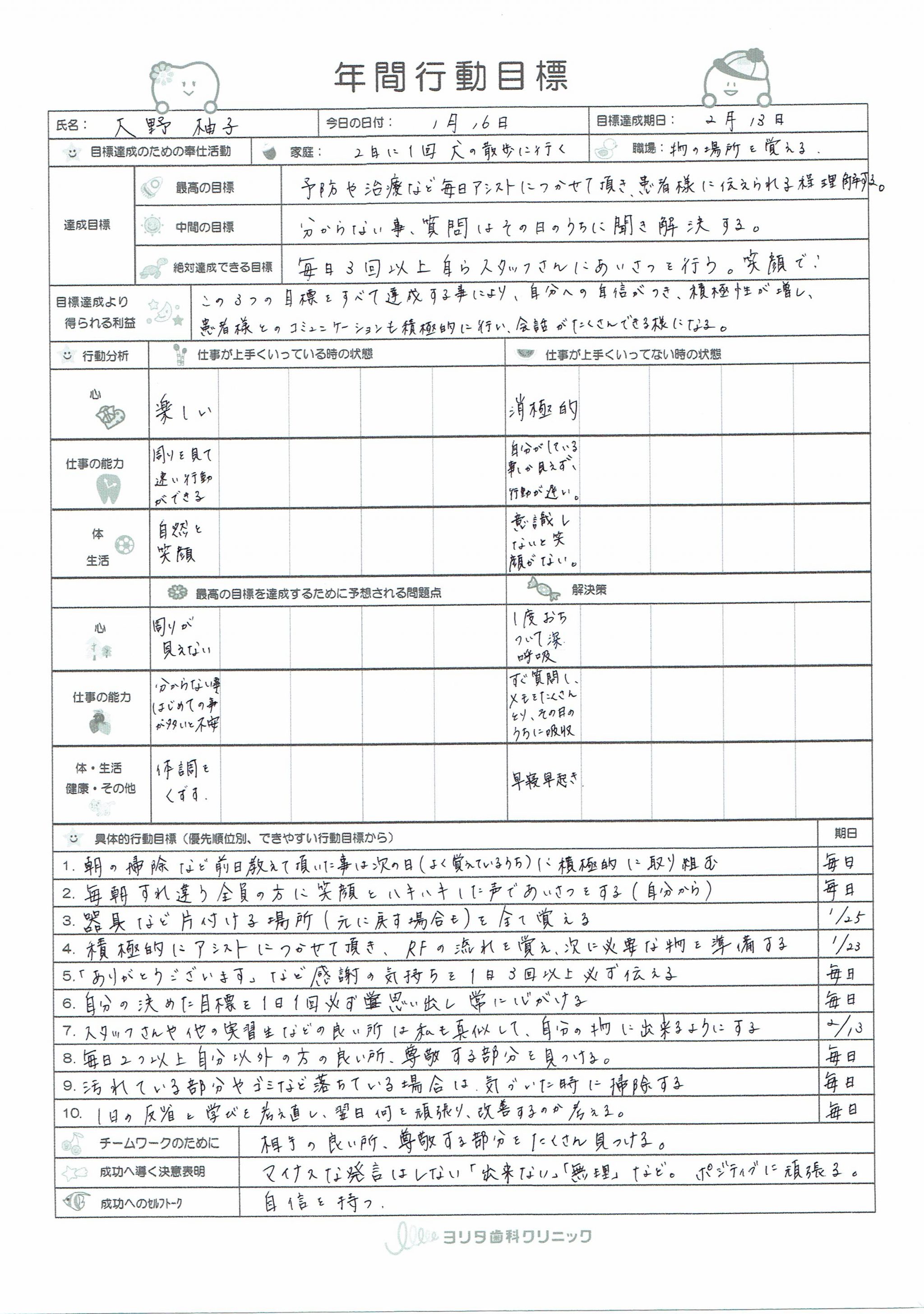・毎朝すれ違う全員の方に、笑顔とハキハキした声で、挨拶をする。 |