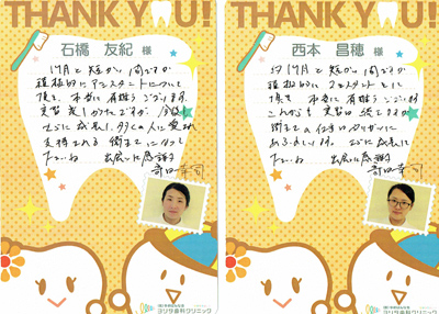 立派な歯科衛生士になった実習生のお二人と、またどこかでお会いできる
