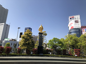 そして、最後は岐阜駅に立つ、黄金色の織田信長公です。