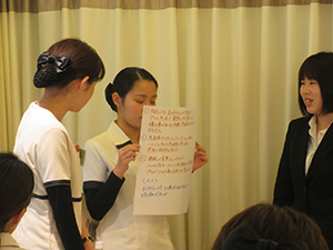 話し合い、テーブル毎に発表しました。自分のテーブルだけでもかなりの数の意見が出たのですが、