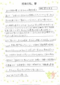 ・将来の夢は、英語で栄養指導ができるようになって、単る幸せを伝えていくこと。