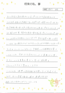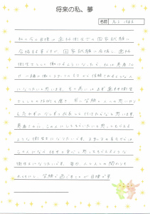 将来、自分が歯科衛生士として歯科医院に勤めた際には、日々目標を立て、患者様を