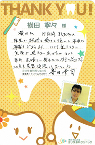 ヨリタ歯科クリニックに約一ヵ月間、実習に来させていただき 初めは分からないことだらけで、アシスト中もとても迷惑をかけて また、ヨリタ歯科クリニックのスタッフの皆さんは、どんな