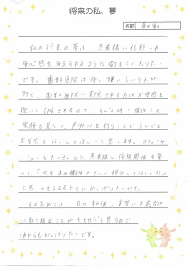 今回、『実習感想文シート』『将来の私、夢』が私の元に、届きました。