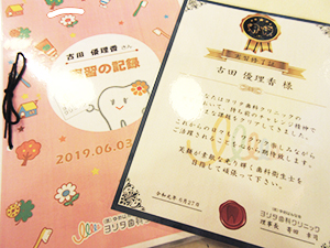 研修終了証と、私からのメッセージ、そしてお花をお渡ししました。