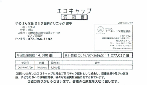 たくさんの患者様からの協力のお陰で、10年で100万個を超えるキャップを