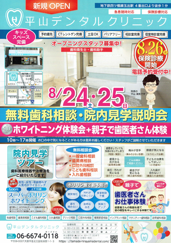地元大阪市玉出で新しく、平山デンタルクリニックをオープンしました。